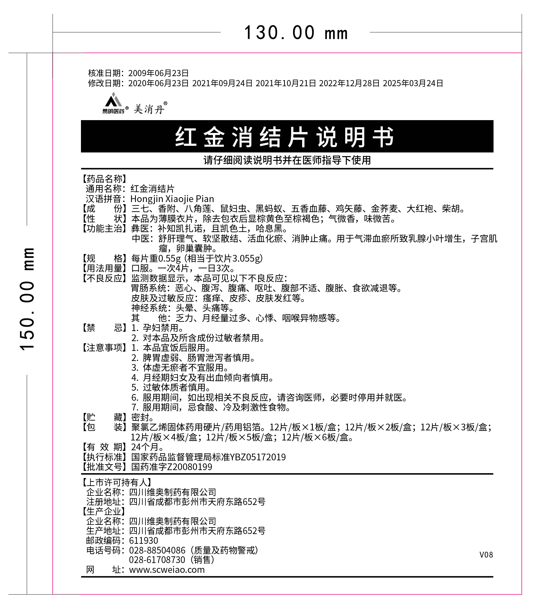 192025-09我司對紅金消結(jié)片說明書(批準(zhǔn)文號:國藥準(zhǔn)字Z20080199)進(jìn)行修訂